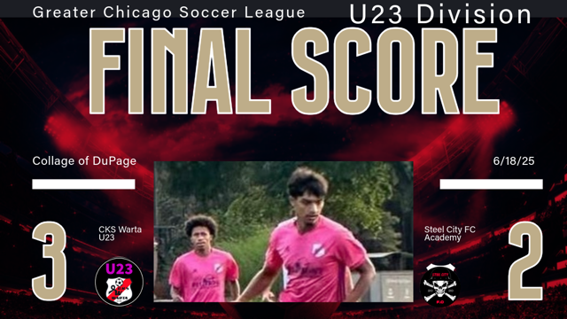 Warta U23 fought back from two goals down at the half to grab all three points with a win over Steel City FC Academy on Wednesday night at home of Collage of DuPage.
